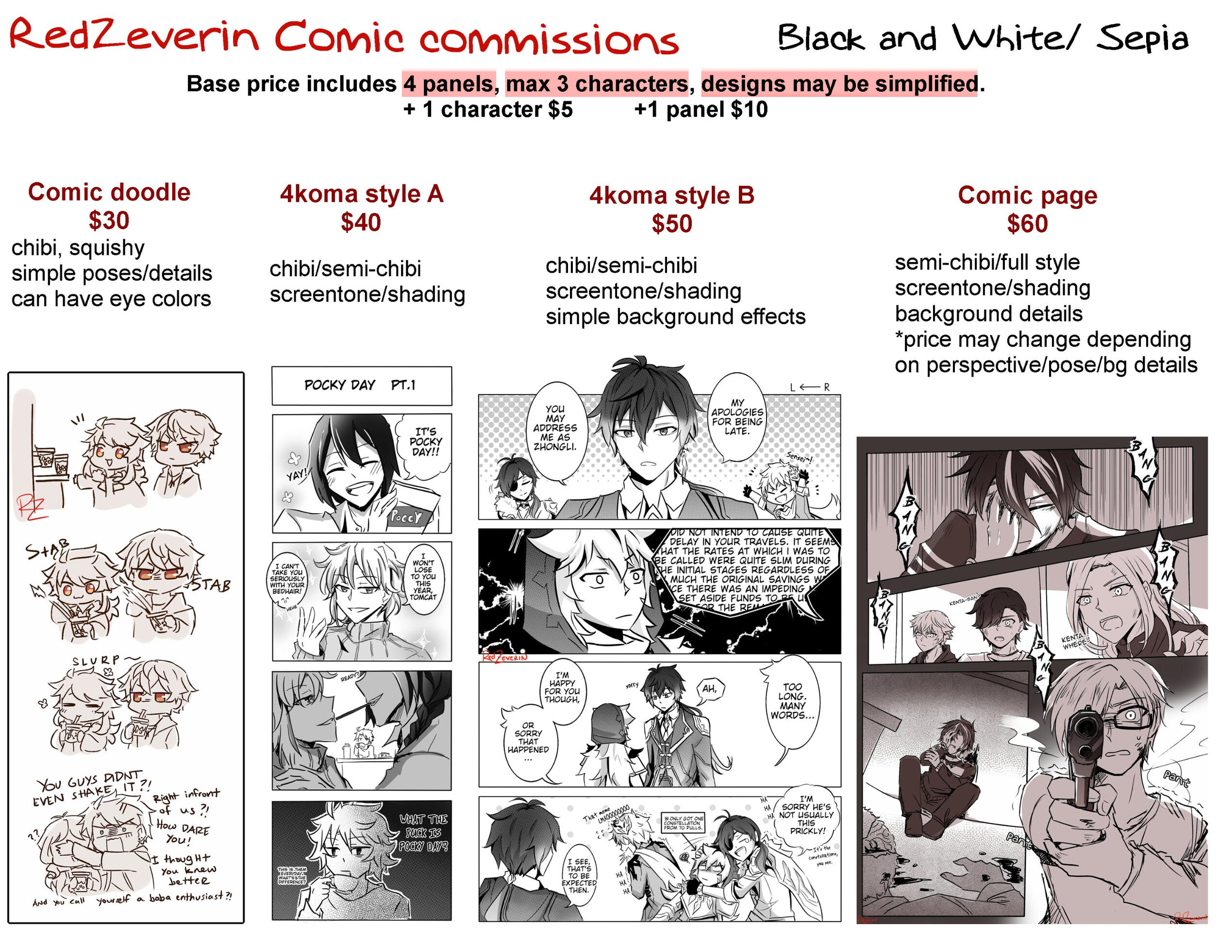 - Black&white character: +60USDOther art will usually be priced at around an additional 170% [base price + (baseprice x 70%)]