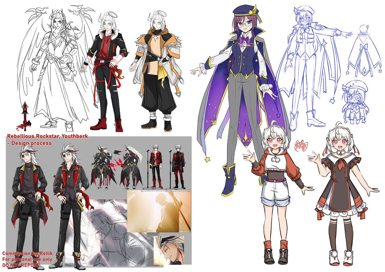 Provide themes, outfit references, exact themes and we can mix and match the designs and colors!Base price : $80 for 2 designs.+ $25 : one more design OR combining the two designs